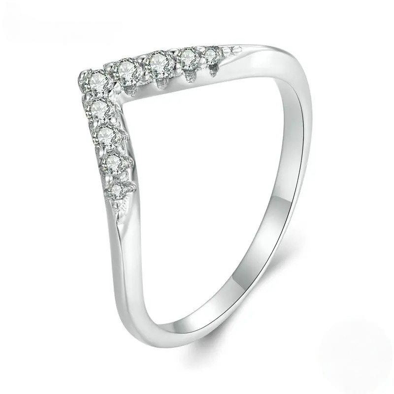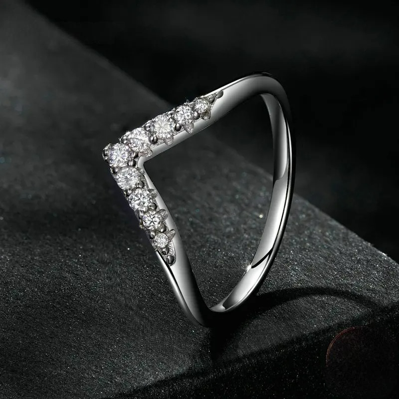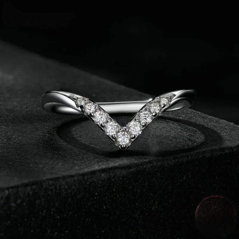 خاتم مويسانيت فضي على شكل حرف V - ريم