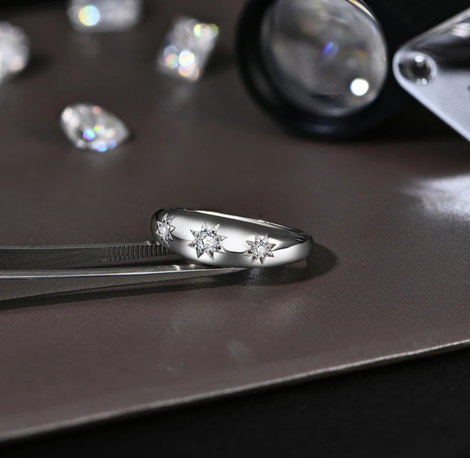 خاتم مكتنز من الفضة الإسترليني من المويسانيت - كيسي